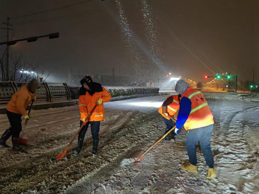 上午10時許,暴雪如約而至。裝有融雪劑的車輛全部整裝待發(fā),聞令而動,采取“人工+機械”不間斷作業(yè)模式,對轄區(qū)主次干道、橋涵、火車站東站、創(chuàng)智大廈等帶坡路段及時拋撒融雪劑,采取“滾刷+鏟車”組合方式,反復(fù)排掃路面積雪,確保主次干道、帶坡路段通暢無冰。