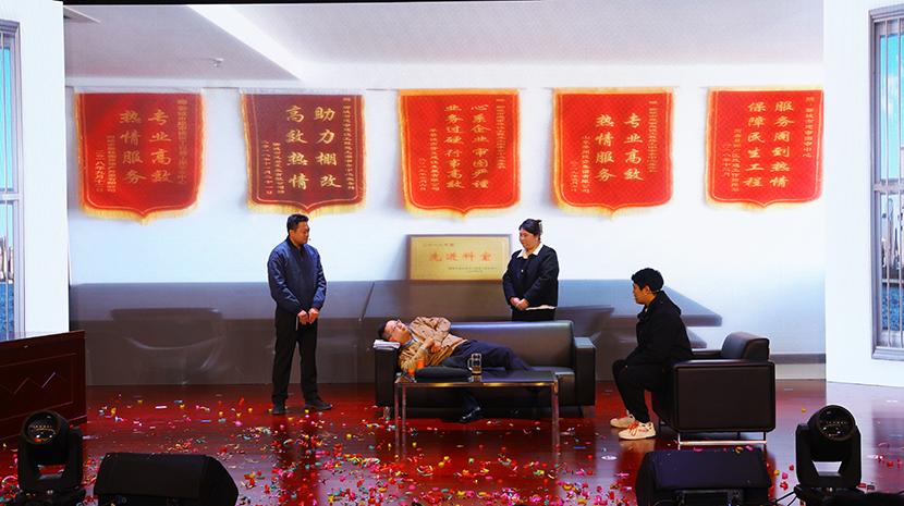 演出在舞蹈《祖國你好》中拉開序幕,隨后,一個個歡快、喜慶、祥和的文藝作品相繼上演。這其中,既有充分展現(xiàn)臺北發(fā)展力量的情景劇《我們是臺北力量》《南泥灣暢想》,也有大氣磅礴的男女對唱《不忘初心》和小合唱《眾人劃槳開大船》,有草原氣息的笛子獨奏《牧民新歌》,諷刺當下“躺平式”干部的廉潔作風小品《坑》,展現(xiàn)公司活力的男團《舞蹈:串燒》《山丹丹花開紅艷艷》,奇特、神秘的魔術表演,一腔情懷的京劇《沙家浜-唱段軍民魚水情》……最后,在機關全體人員帶來舞蹈《相親相愛的一家人》中落幕,高潮迭起、精彩不斷,得到廣泛好評。