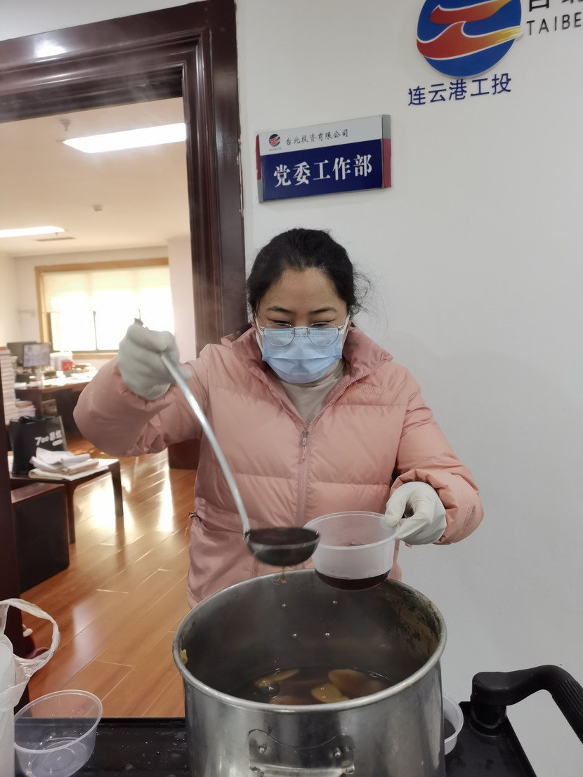 經科學配制,組織專人每天用生姜、紅糖、蔥根、甘草等原料熬制姜茶提供給員工飲用。職工們喝著香噴噴的姜茶,個個臉上流露出幸福的笑容,邊喝邊說:這個湯劑既暖身又暖心!