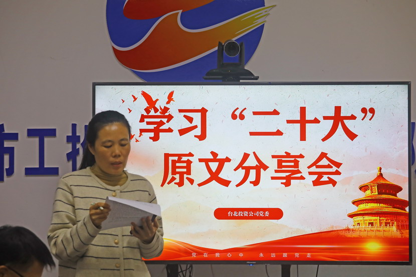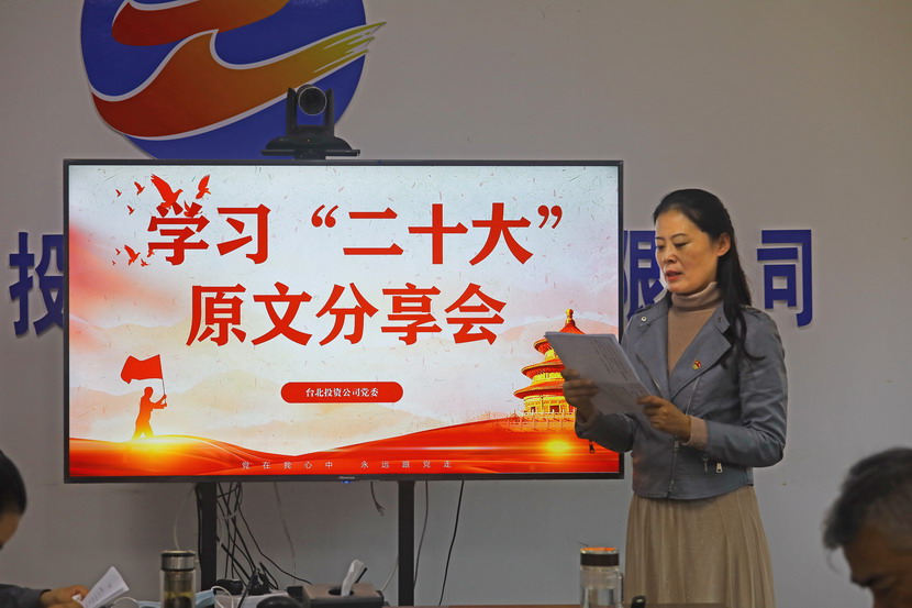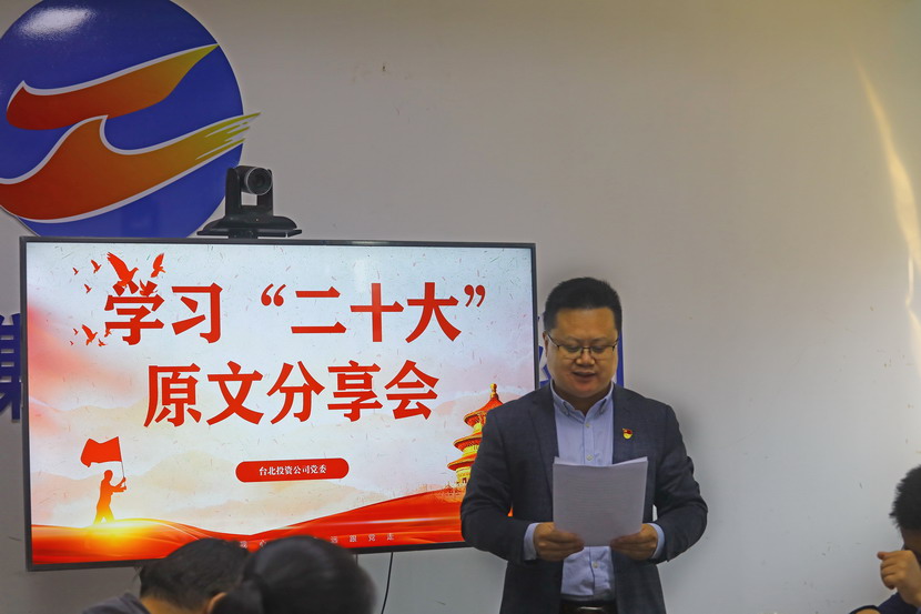 10月21日,臺(tái)北投資公司黨委組織召開(kāi)黨的二十大報(bào)告學(xué)習(xí)交流會(huì),每位同志閱讀報(bào)告原文,針對(duì)報(bào)告內(nèi)容結(jié)合工作實(shí)際,分享心得體會(huì)、暢談工作思路、謀劃未來(lái)發(fā)展。