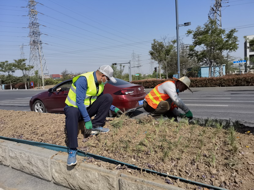 臨達(dá)、美多利、資源分公司等黨支部組織聯(lián)合突擊小隊(duì),從4月30日起主攻黃海大道綠化責(zé)任區(qū),時(shí)至中午“不下火線”,黨員職工就著礦泉水,啃著自帶的煎餅,節(jié)約時(shí)間搶工期。