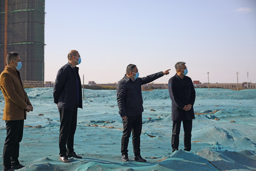 楊龍董事長一行首先檢查貨場道路和地面硬化情況,然后對未用地塊裸土苫蓋情況進(jìn)行現(xiàn)場督察。