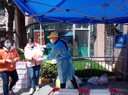 “大爺,您好,拿什么菜?”早上8點(diǎn),海州防疫臨時(shí)黨支部的江海凌同志開(kāi)始一天的志愿服務(wù)。不過(guò),他今天“改行”了,不再是信息采集員,而是化身鄰居菜籃子的“守護(hù)者”。