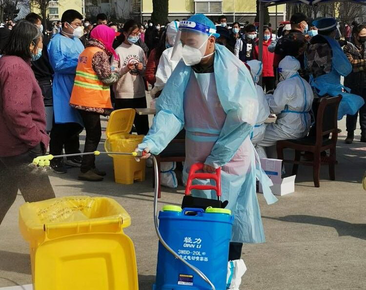 霍正鋼,志愿者隊(duì)伍的一員,也是這支志愿服務(wù)隊(duì)伍中的中堅(jiān)力量。他,心中有大愛,在海州灣黨支部3月7日發(fā)出“馳援社區(qū),共同抗疫”動員令后,他第一個站出來:“疫情就是命令,防控就是責(zé)任。身為黨員,我理應(yīng)模范帶頭,支持新冠肺炎疫情防控工作?!彼粌H是這樣說的,更是這樣做的,在昌圩社區(qū)每一次的核酸檢測中,他專挑“急、難、險、重”的活。比如消殺工作,這是一個體力活,需要背著足足有20公斤重的消毒液,來回不停的走動,不斷的添加消毒液。有幾次,核酸檢測從早上8點(diǎn)一直持續(xù)到晚上8點(diǎn),足足12個小時,而消殺工作的時長都達(dá)到14個小時,不僅是檢測過程中,開始前和結(jié)束后的一小時都要消殺到位。14個小時下來,霍正鋼同志穿著密不透風(fēng)的防護(hù)服,里面的衣服濕了又干,干了又濕······。當(dāng)大家看到他口唇干裂的都掉了皮,問他:“你是沒有喝水嗎?”“不能喝水,忍著吧,喝水就得上側(cè)所,耽誤時間,這波病毒隱匿性強(qiáng),傳播速度快,不能有一絲懈怠?!彼┖竦恼f著。
