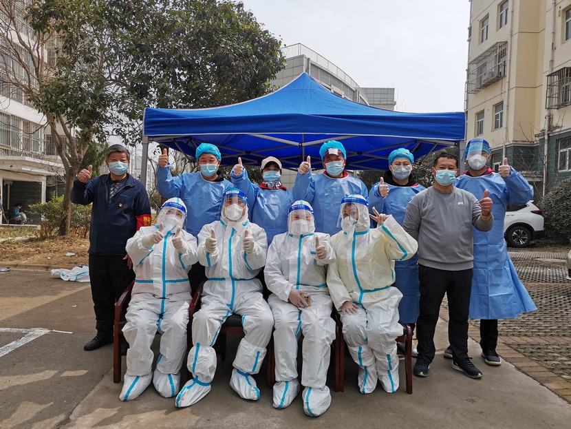 夜里10點整,8名志愿者一個不少全部到齊,李明書記開始安排工作,“蘇玲,你到新城27號樓樓下進行建點,貼好‘一米線’標志,那邊共設(shè)置兩個檢測臺,注意要貼兩隊‘一米線’?!薄扒乩杳?,你去B14號樓下,同樣那邊也是兩個檢測臺,貼好兩隊‘一米線’?!薄盎粽撃銕ьI(lǐng)邱榮濱、韓永剛到各個點搭設(shè)帳篷?!薄笆O碌娜诉\送桌子、椅子、防疫標志、廢物處置垃圾箱以及拉好警戒線……”,“各自工作結(jié)束,不準擅自撤退,統(tǒng)一回到社區(qū),看看有沒有其他收尾工作?!惫ぷ鞑贾猛戤?,志愿者們立即投入到緊張的工作中,一個個的身影逐漸消失在夜色里。