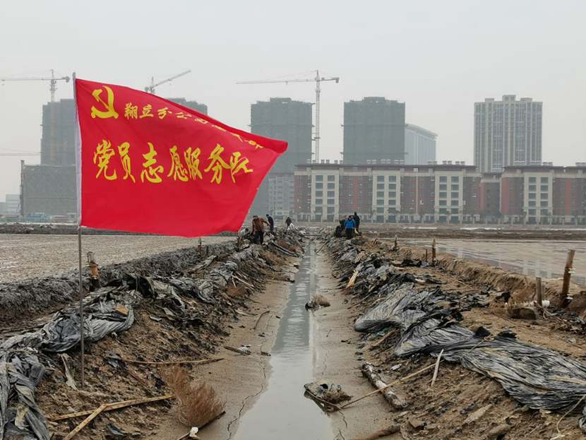 勞動現(xiàn)場,鮮紅的“黨員突擊隊(duì)”旗幟迎風(fēng)飄揚(yáng),凜冽的寒風(fēng)夾雜著細(xì)雨,絲毫不減大家的勞動熱情,個(gè)個(gè)汗流浹背、滿身泥漿,不怕臟不怕累,經(jīng)過3個(gè)小時(shí)的突擊勞動,共清理1200米、16車池埝垃圾。