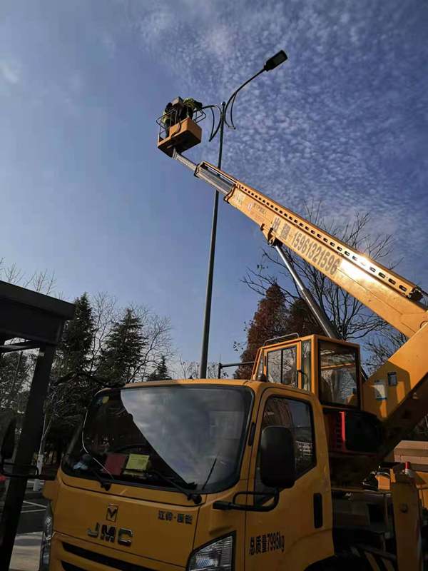 ?早已習(xí)慣了風(fēng)餐露宿的翔立人,中午一碗面條、或是一碗蓋澆飯草草了事,飯后不休息,直接爬上高空作業(yè)車?yán)^續(xù)工作,運(yùn)輸隊(duì)圍繞著幾臺(tái)高空作業(yè)車也是忙個(gè)不亦樂乎,“加浦,像這樣將舊路燈立起來,先貼著車廂圍一圈,這樣可以多裝點(diǎn)”,既要負(fù)責(zé)將舊路燈收集送到甲方倉庫,又要領(lǐng)出來供給幾個(gè)隊(duì)的物料供應(yīng),同樣是忙的馬不停蹄。大家你追我趕,相互暗暗競(jìng)爭(zhēng)者,賽安全,比質(zhì)量,趕進(jìn)度。晚上收工后,翔立辦公群里各隊(duì)報(bào)工作量“一隊(duì)今天完成了18根桿”,“二隊(duì)今天干得最多了,他們完成20根桿,換了40個(gè)燈頭,不簡(jiǎn)單啊”,“你也不錯(cuò)嗎,一個(gè)人完成了16根桿,還想咋的”,“今天俺們隊(duì)的工具不得手,明天我們隊(duì)一定要超過你們”,群里大家相互鼓勵(lì)著!
