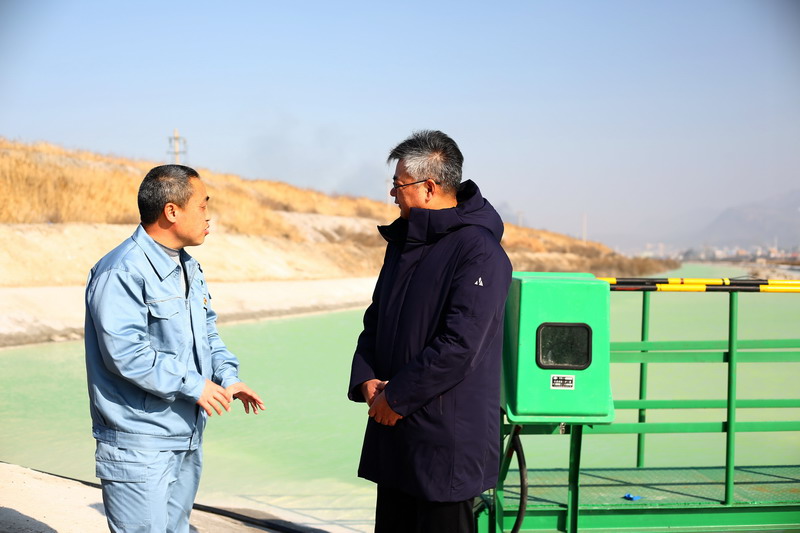 針對鈣液原料水環(huán)保參數(shù)超標(biāo)等問題,董事長王德志一行現(xiàn)場勘察堿業(yè)公司氨堿上清液,堿業(yè)公司渣場管理處主任盧全才等領(lǐng)導(dǎo)詳細(xì)介紹近期堿廠的環(huán)保整改措施,首先是進(jìn)一步做好酸堿平衡,確保原料水PH值堿度指標(biāo)不超標(biāo),其次是降低氨氮濃度,確保不超標(biāo)。在此基礎(chǔ)上,堿業(yè)公司在氨堿上清液送水通道安裝水質(zhì)在線監(jiān)測設(shè)備,確保及時發(fā)現(xiàn)異常,做到第一時間處置。