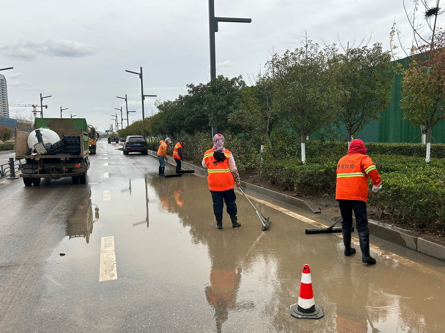 這次任務(wù)不同于以往,不僅有大范圍、高頻次的道路沖洗,更有大面積覆蓋防塵網(wǎng),大片區(qū)清掃落葉,由于時(shí)間緊迫,無法同班組長(zhǎng)坐下來布置,王斌、陳大壹便利用吃飯時(shí)間進(jìn)行討論。他們按照“重大活動(dòng)有預(yù)案,重點(diǎn)現(xiàn)場(chǎng)有人跟,重要路段有人保”的原則提前考察了出行主要路線和主要觀摩地點(diǎn),對(duì)照班組人數(shù)進(jìn)行細(xì)化分工,為了更加精確的將工作計(jì)劃進(jìn)行落實(shí),他們到現(xiàn)場(chǎng)挨個(gè)同每個(gè)班組長(zhǎng)進(jìn)行溝通協(xié)調(diào),有問題現(xiàn)場(chǎng)解決、有堵點(diǎn)現(xiàn)場(chǎng)調(diào)配。