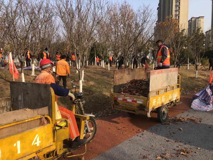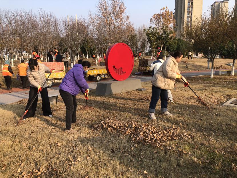 活動(dòng)現(xiàn)場(chǎng),黨員同志、積極分子分為兩撥,分別從創(chuàng)智綠園北門和東門對(duì)園內(nèi)雜草落葉進(jìn)行清除。在戴好手套,做好防護(hù)、防凍措施的同時(shí),紛紛拿著掃帚、耙子等工具,統(tǒng)籌安排、分工勞作,齊心協(xié)力,有的用掃帚掃落葉、有的用袋子裝落葉、有的用耙子摟落葉……大家忙得熱火朝天,充分發(fā)揚(yáng)不怕臟、不怕苦、不怕累的黨員先鋒本色,創(chuàng)智綠園內(nèi)處處是同志們清理雜草落葉的身影,構(gòu)成了一道亮麗的風(fēng)景線,經(jīng)過(guò)一個(gè)多小時(shí)的辛勤勞動(dòng),兩撥隊(duì)伍順利“會(huì)師”,沿途雜草落葉被清理得干干凈凈,公園環(huán)境也得到明顯改善。