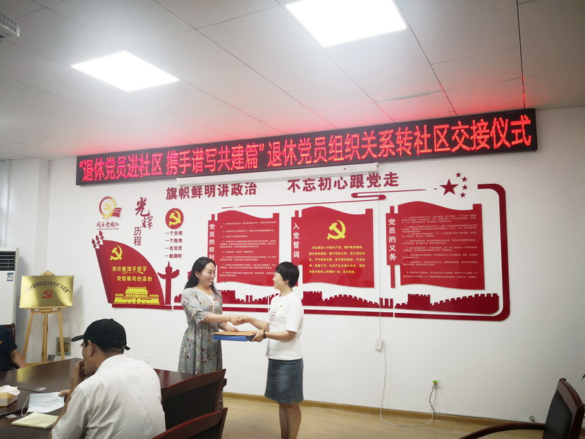 黨員組織關(guān)系規(guī)范轉(zhuǎn)接是事關(guān)黨員黨性和組織觀念的重要工作,是加強(qiáng)基層黨組織建設(shè)的基礎(chǔ)性工作。此次為退休黨員社會(huì)化管理工作啟動(dòng)以來移交到社區(qū)的退休黨員舉辦組織關(guān)系轉(zhuǎn)接儀式,標(biāo)志著此項(xiàng)工作已經(jīng)步入了正?;壍?,也為后續(xù)新增退休黨員“即退即辦”常態(tài)化移交工作打好了基礎(chǔ)。