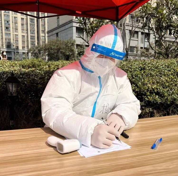 3月12日,社區(qū)統(tǒng)一安排,換了崗位,經(jīng)過崗前細(xì)致培訓(xùn)后,負(fù)責(zé)信息登記、測(cè)試體溫、發(fā)放檢測(cè)卡,服裝也由一次性塑料服換上了“大白服”。服裝升級(jí)了,說明防護(hù)級(jí)別也升級(jí)了,他二話沒說,服從安排,迅速到崗?!澳茫?qǐng)?jiān)谶@邊登記信息,測(cè)量一下體溫”,這是他每天重復(fù)最多的話,他穿著密閉的防護(hù)服,連上一趟衛(wèi)生間都成了一件很奢侈的事情,為了節(jié)約醫(yī)療物資,早晨不敢多喝水,工作期間不喝水,直到檢測(cè)結(jié)束才和其他工作人員一起吃飯。有人問:“這項(xiàng)工作有風(fēng)險(xiǎn),怕不怕?”他說:“怕,當(dāng)然怕,但和身邊的醫(yī)護(hù)人員比起來,我這點(diǎn)真不算什么,向他們致敬!”目前,他所在小區(qū)已經(jīng)進(jìn)行了13次全員核酸檢測(cè),他每次早上7點(diǎn)到崗,下午2點(diǎn)左右結(jié)束,脫下防護(hù)服后背都是濕漉漉的。