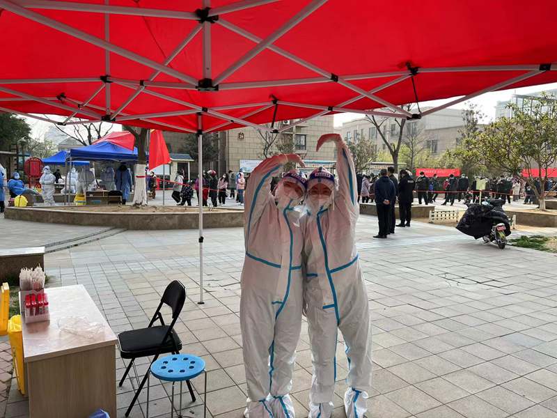 14:00??核酸檢測(cè)進(jìn)入尾聲,忙里偷閑和大家聊會(huì)兒天,身邊的“大白”來自各行各業(yè)。疫情防控戰(zhàn)打響,在這危難時(shí)刻,我們一同挺身而出,臨危受命,“逆行”沖往防疫第一線。大家聽從指揮、主動(dòng)擔(dān)當(dāng)?shù)木唧w行動(dòng),充分體現(xiàn)了年輕黨員能打硬仗、敢打硬仗的優(yōu)良品格!