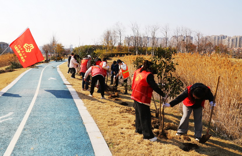 ? ? 都說(shuō)女人能頂半邊天,不僅在工作上獨(dú)當(dāng)一面,掄起鐵锨來(lái)也有“女漢子”的風(fēng)采。在植樹(shù)活動(dòng)中,女職工們齊心協(xié)力,有的搬運(yùn)樹(shù)苗、有的挖坑育樹(shù)、有的培土澆水,大大小小百余棵樹(shù)木很快就玉立在昌圩湖公園健康小路兩側(cè),為昌圩湖公園增添了一份綠意。