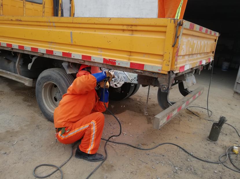 1月9日上午,經(jīng)過該公司設(shè)備維修班組再三斟酌,考慮如送修理廠維修,不但產(chǎn)生一筆不小的維修費用,而且等待維修過程時間較長,影響工作進度,為能給公司節(jié)省開支和不影響工作進度,維修人員量好車廂底板尺寸后,將鐵板切割出需要的尺寸,一塊塊拼湊起來,加固在車廂底板上,通過半天的時間,順利為工具車底板披上一層合身、漂亮又特別的“盔甲”,有效延續(xù)了它的使用壽命。